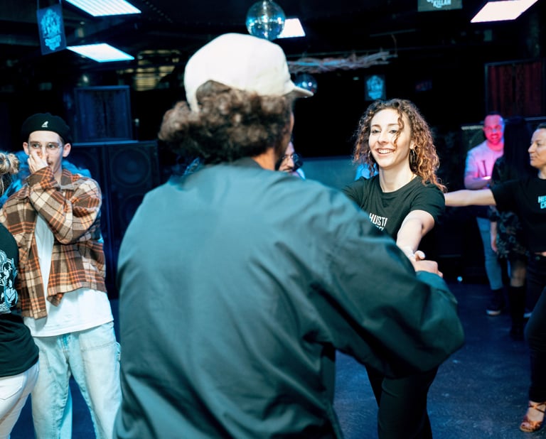 Unisciti a noi per un emozionante corso di ballo Hustle! Impara i passi base e divertiti con la musica disco e funk. Perfetto per tutti, dai principianti agli esperti. Non perdere l'occasione di ballare insieme!